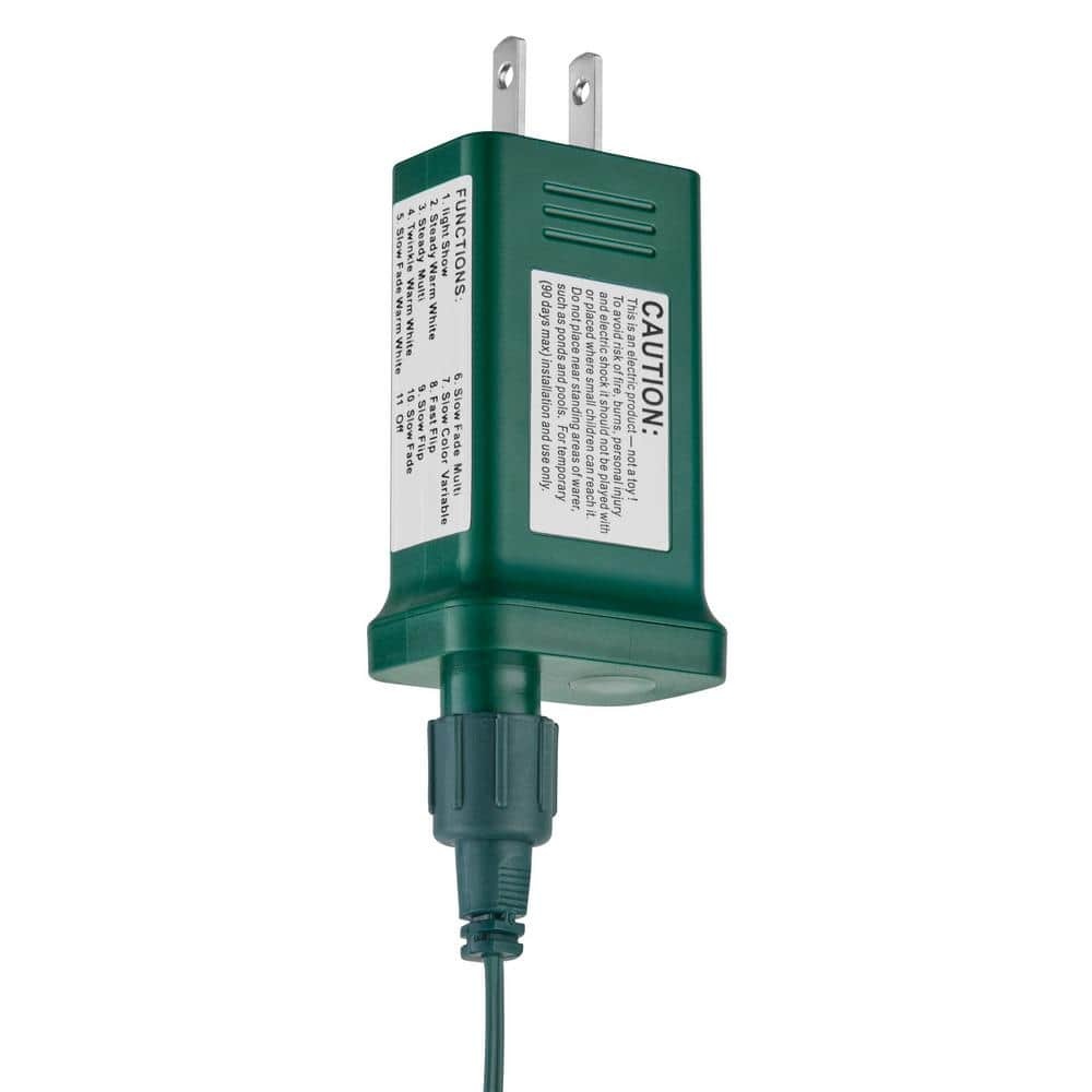 Show off your seasonal spirit with these Home Accents Holiday 400 Count Grand Duchess Color Changing Warm White to Multi-Colored Twinkling Steady Lit Micro LED Lights. This versatile light string offers 10-functions and adjusts from warm white to multi-colored displays with a manual switch for trouble-free operation. Steady lit-technology enables your lights to stay lit even if a bulb gets damaged, is missing or burns out. Connect up to 5 sets for expanded coverage of your fences, bushes and balconies. An included storage reel keeps these color-changing LED string lights safely stored when not in use.