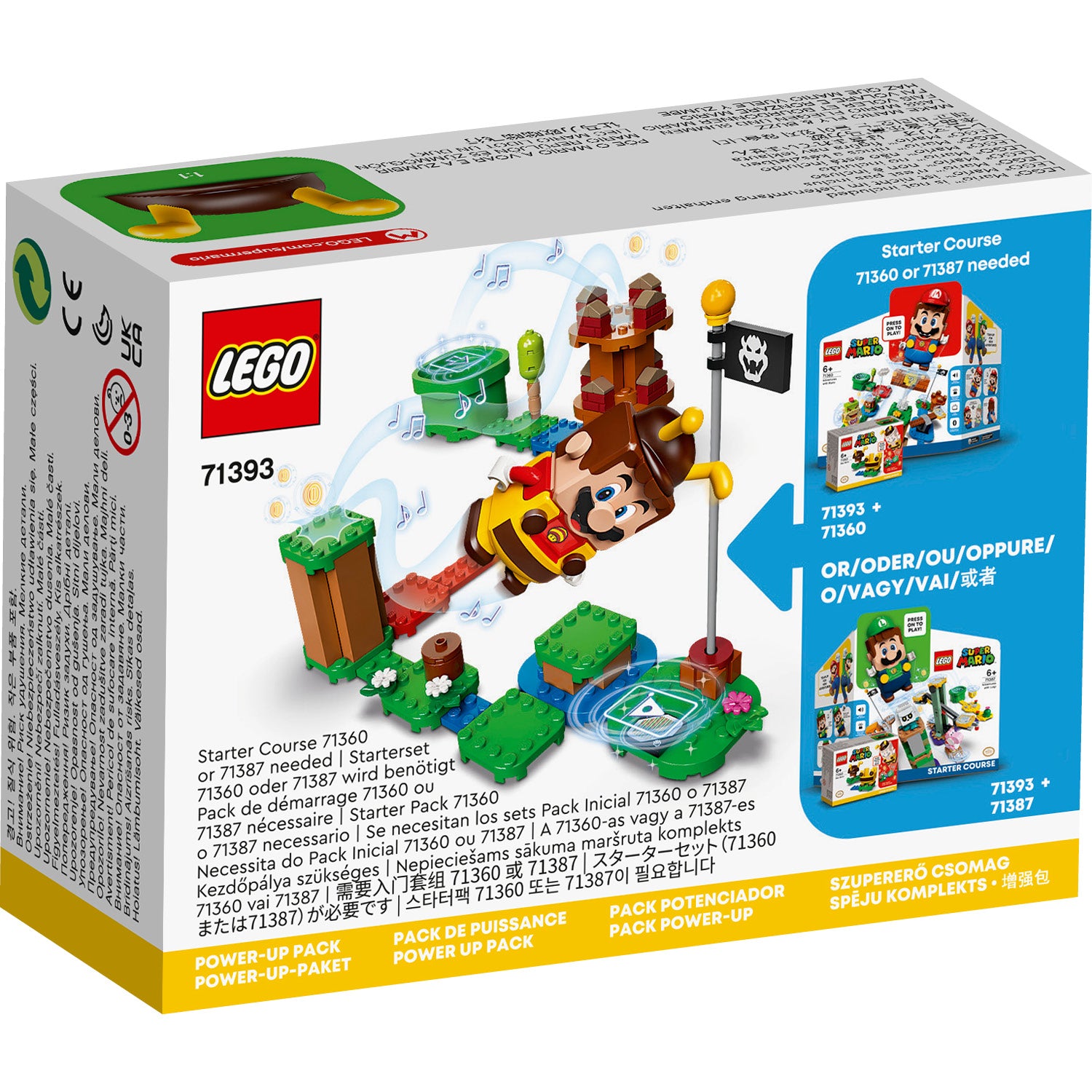 - Other LEGO® Super Mario™ Power-Up Packs are available to use with the Starter Courses and Expansion Sets, including the Frog Mario Power-Up Pack (71392).