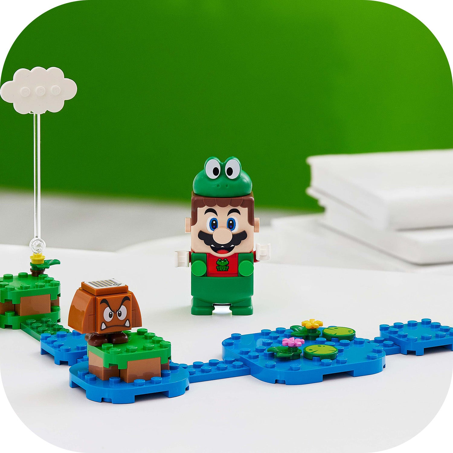 - Bring leaping, splashing fun to LEGO® Super Mario™ fans’ levels with this Frog Mario Power-Up Pack (71392), featuring an interactive suit for LEGO® Mario™ (figure not included).