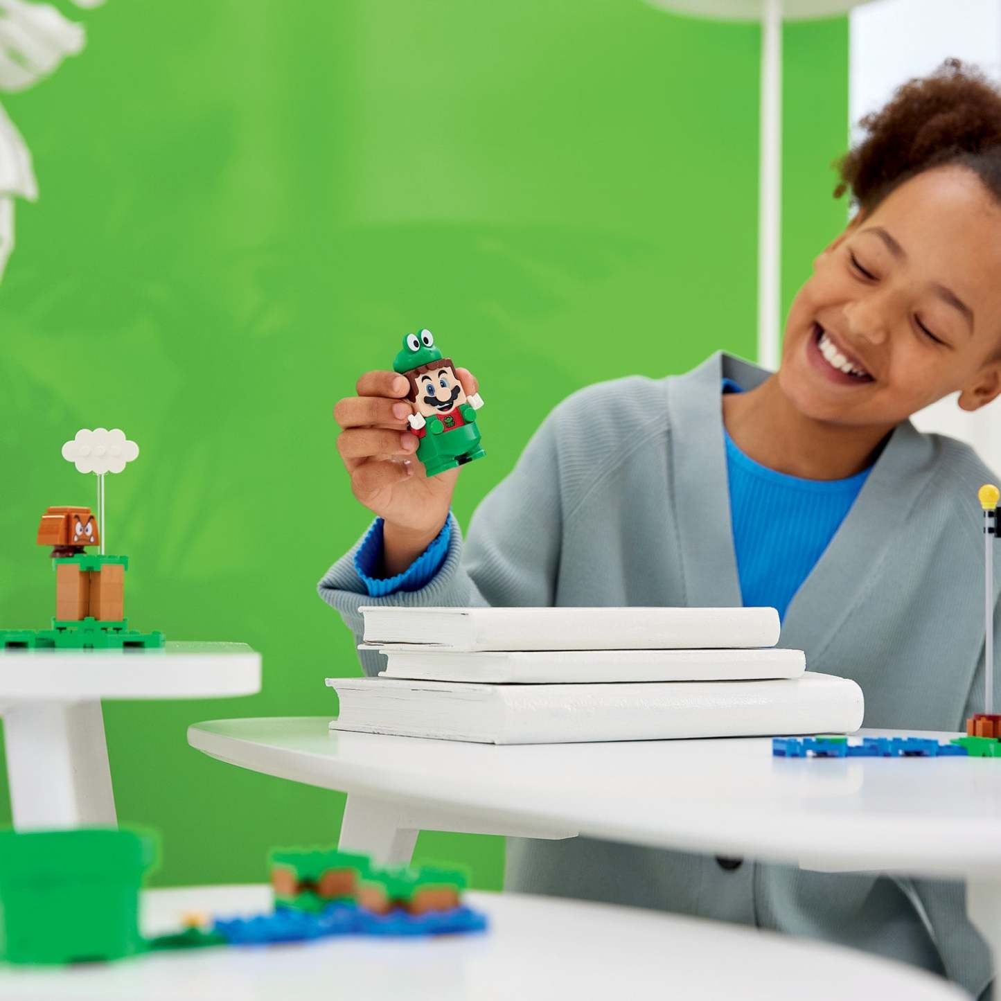 - When LEGO® Mario™ wears this suit, players earn extra digital coins for making him jump like a frog and splashing sounds are triggered each time the figure lands.