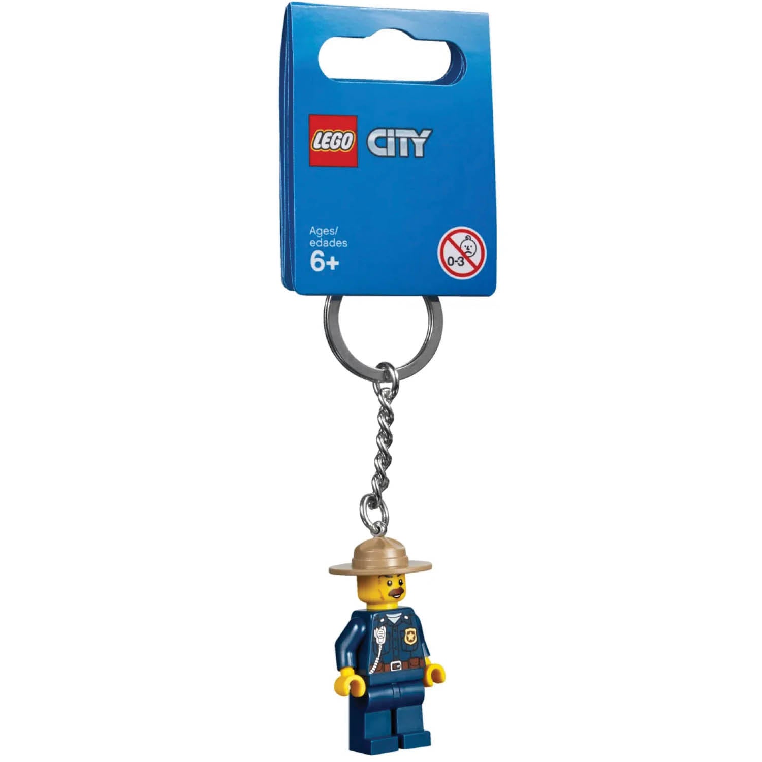 - Features a Mountain Police minifigure attached to a durable metal chain and ring.