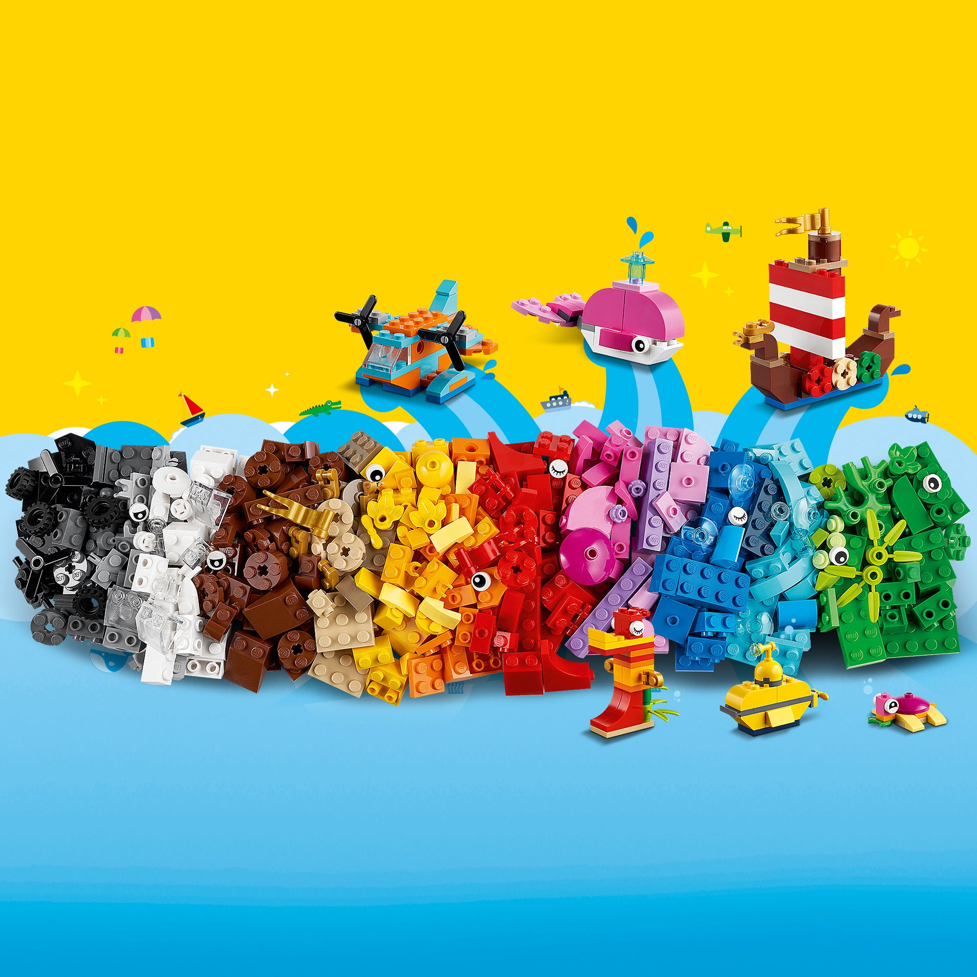 - Imaginative play for kids aged 4 and up –This LEGO® Classic Creative Ocean Fun (11018) toy building set comes with lots of colorful LEGO pieces and 6 ocean-themed model ideas to kick-start the fun