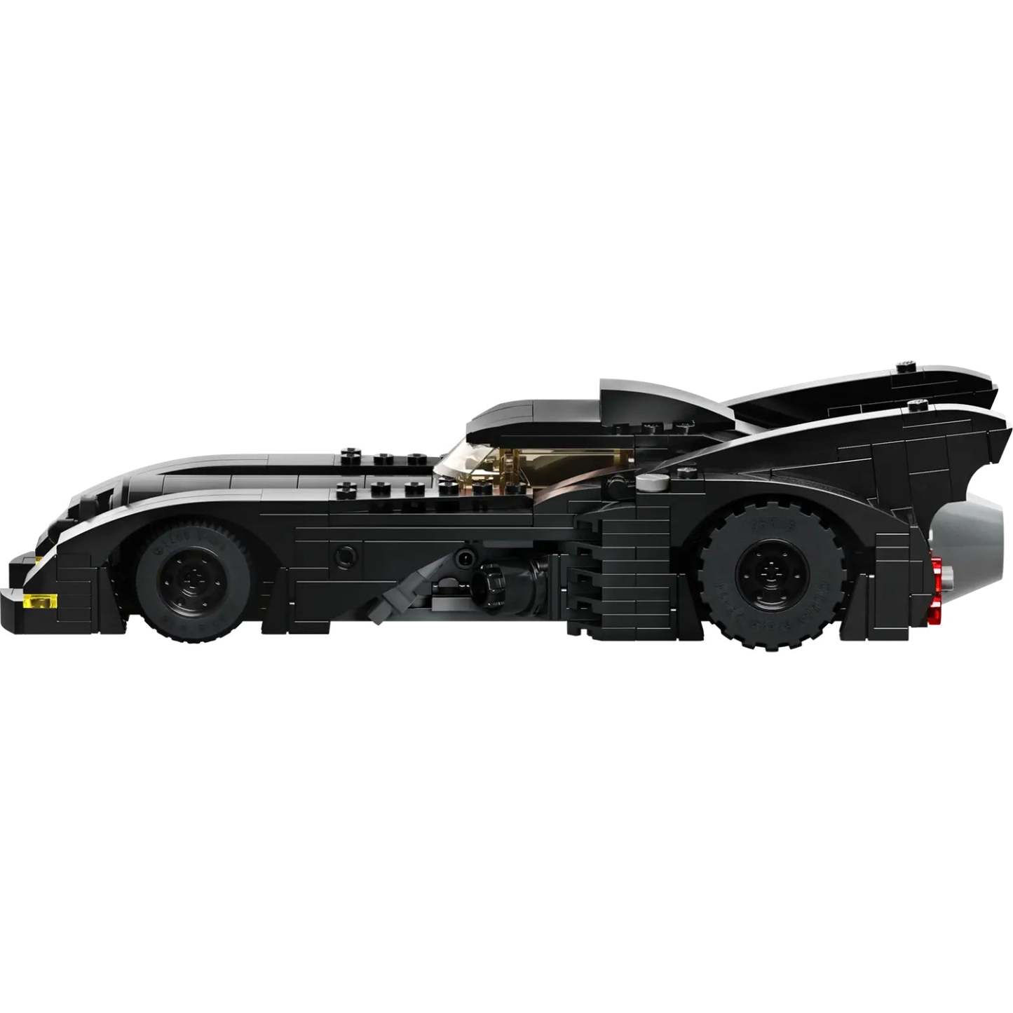 - Realistic Batmobile™ – The roof opens for the Batman™ minifigure with the fabric cape to enter. Turning the cog on the side causes 2 hidden shooters to appear. A flame element attaches to the exhaust