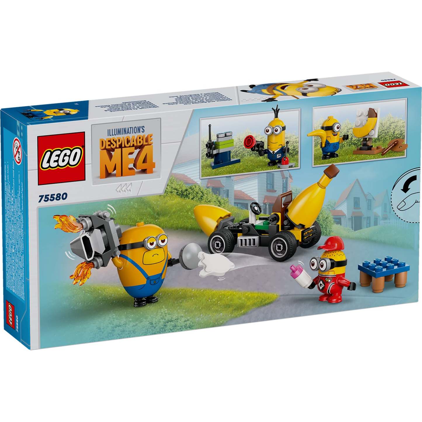 Treat a Minions fan to LEGO® Despicable Me 4 Minions and Banana Car (75580). This creative toy for kids features 4 Minions, a small car toy, plus accessories. It’s a fun movie-toy gift for boys and girls aged 6+ and fans of Illumination’s Despicable Me 4.