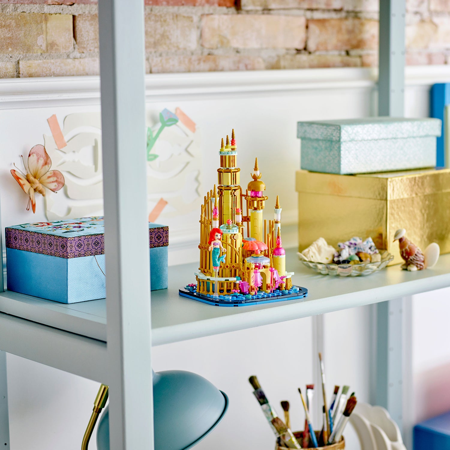 - Authentic elements – Ariel’s Castle is covered in golden details, incorporates various underwater features and includes an Ariel mini-doll figure