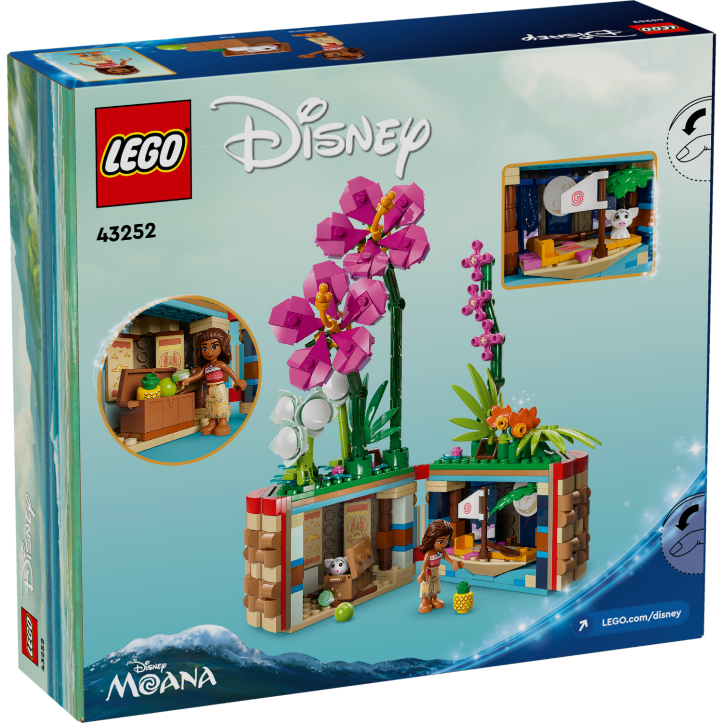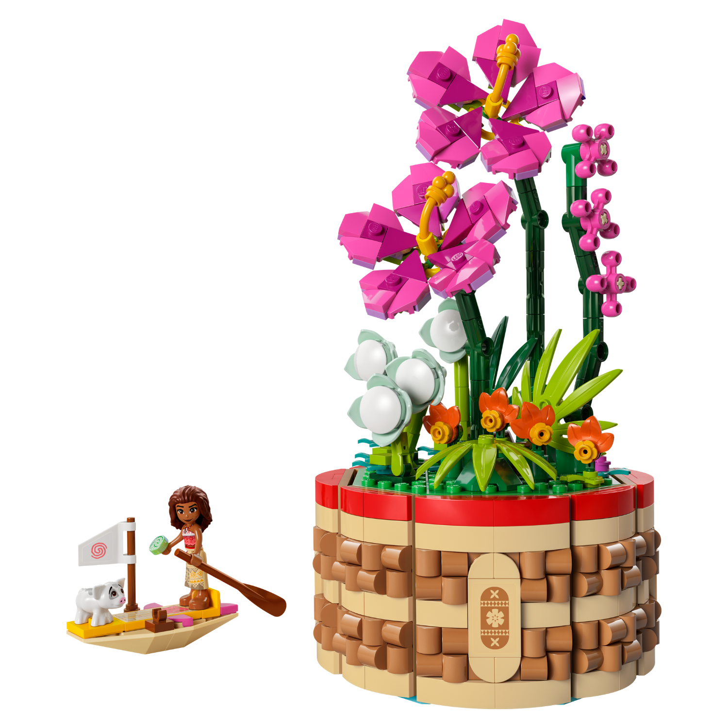 - Creative options – The building toy includes an opening flowerpot with a 'woven' basket design, flowers, a Moana LEGO® ǀ Disney mini-doll figure and Pua LEGO ǀ Disney pig figure
