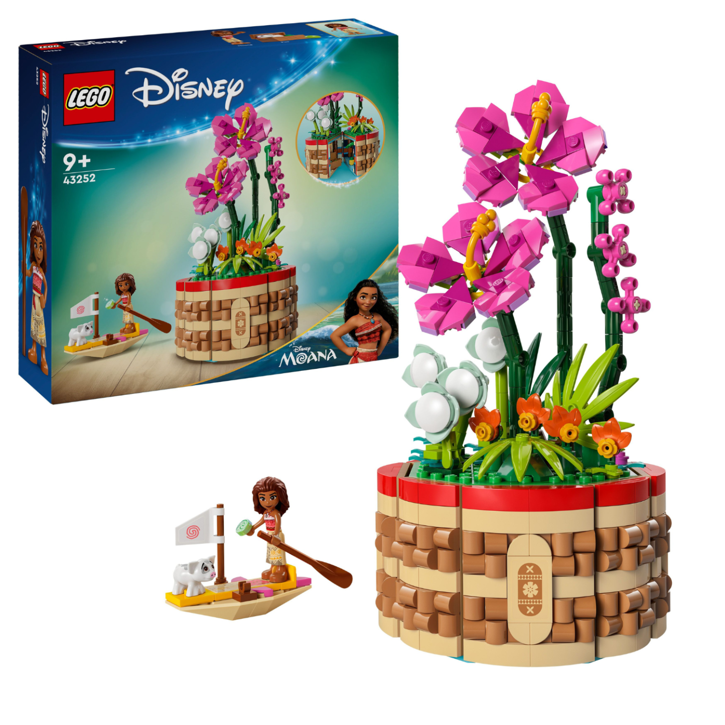 Enchant kids and Disney fans aged 9+ with a fun gift of this LEGO® ǀ Disney Moana’s Flowerpot (43252) buildable toy play-and-display set. This building playset for kids includes a hinged ’woven’ flowerpot with hidden rooms full of fun details, a Moana LEGO ǀ Disney mini-doll figure and Pua LEGO ǀ Disney pig figure, plus a small sailboat and island flowers to set up in a fresh display when the flowerpot is closed.