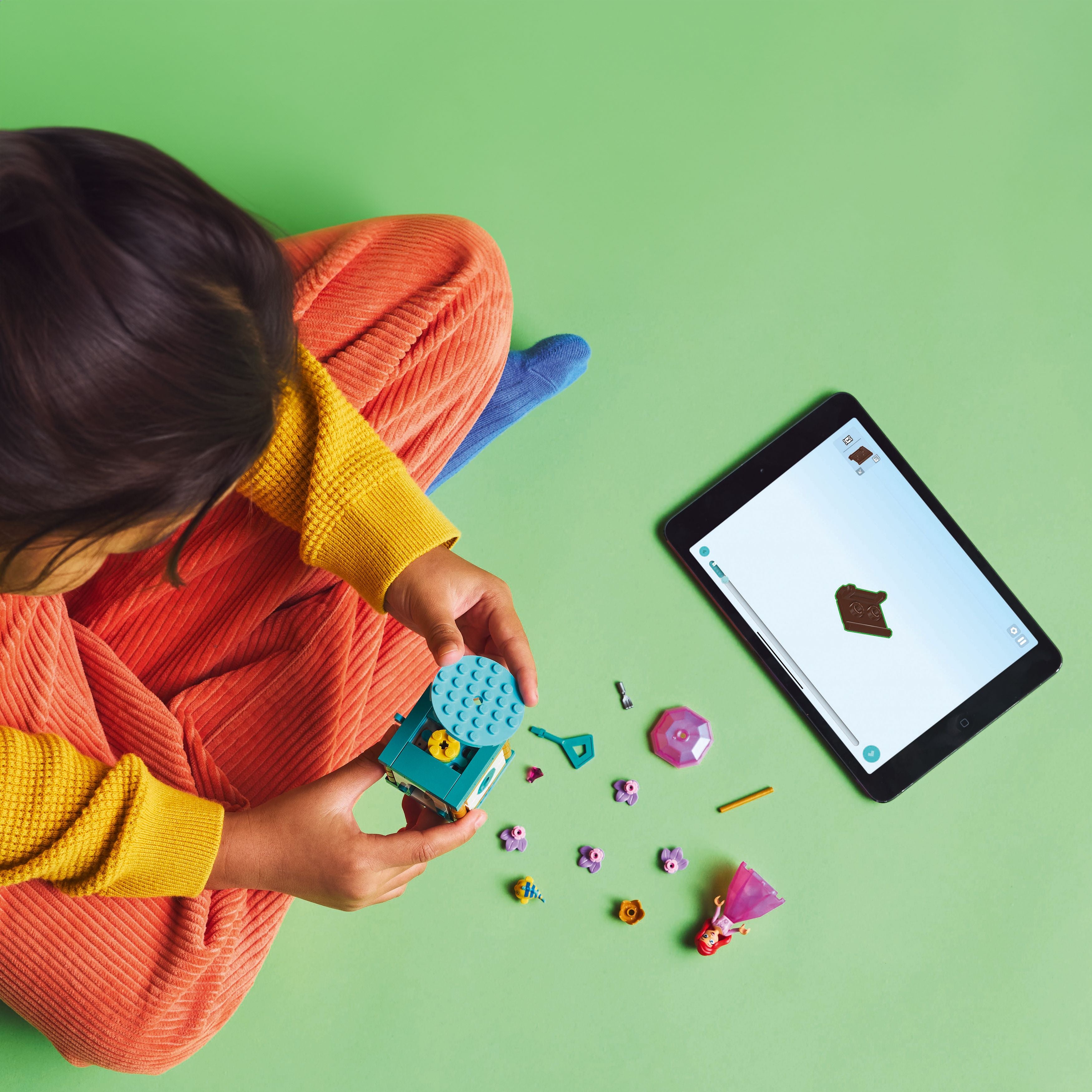 - Engaging building toy – Turn the key on the stand to spin the plate and twirl Ariel around, then store the LEGO® ǀ Disney mini-doll figure inside the ’diamond’ dress using the umbrella as a lid