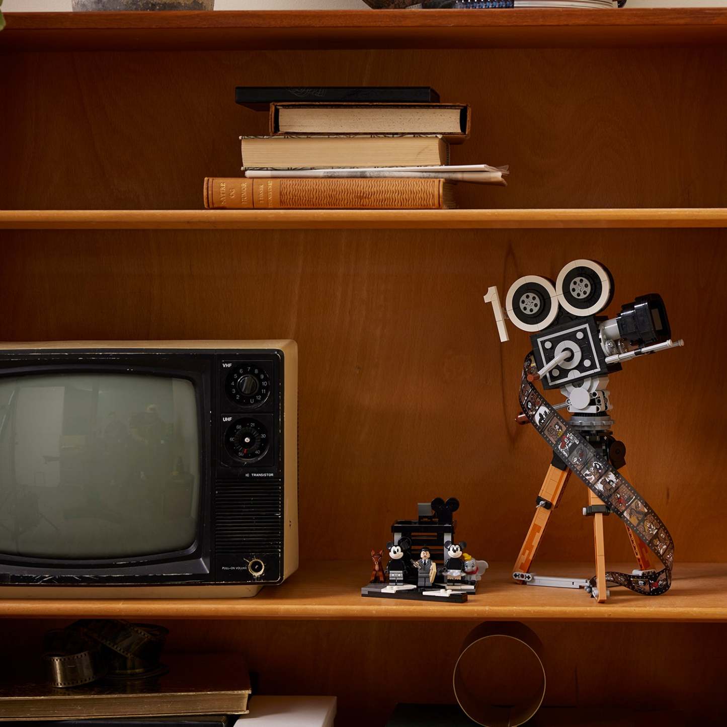 - Build and display – This memorabilia-filled set has 811 pieces that create several distinct items, including an old-fashioned movie camera and director’s clapperboard with multiplane camera