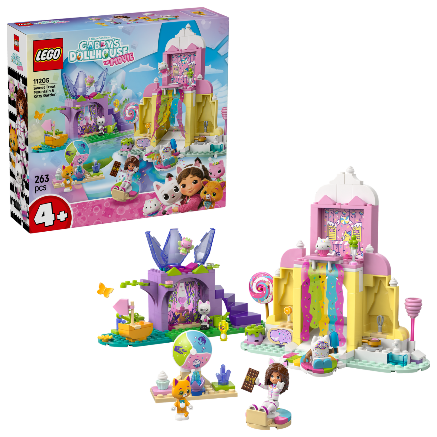 The Sweet Treat Mountain & Kitty Garden (11205) building toy for kids is an imaginative animal-themed gift packed with LEGO® Gabby’s Dollhouse figures. This LEGO pretend-play set makes an ideal gift idea for girls and boys aged 4 years old and over.