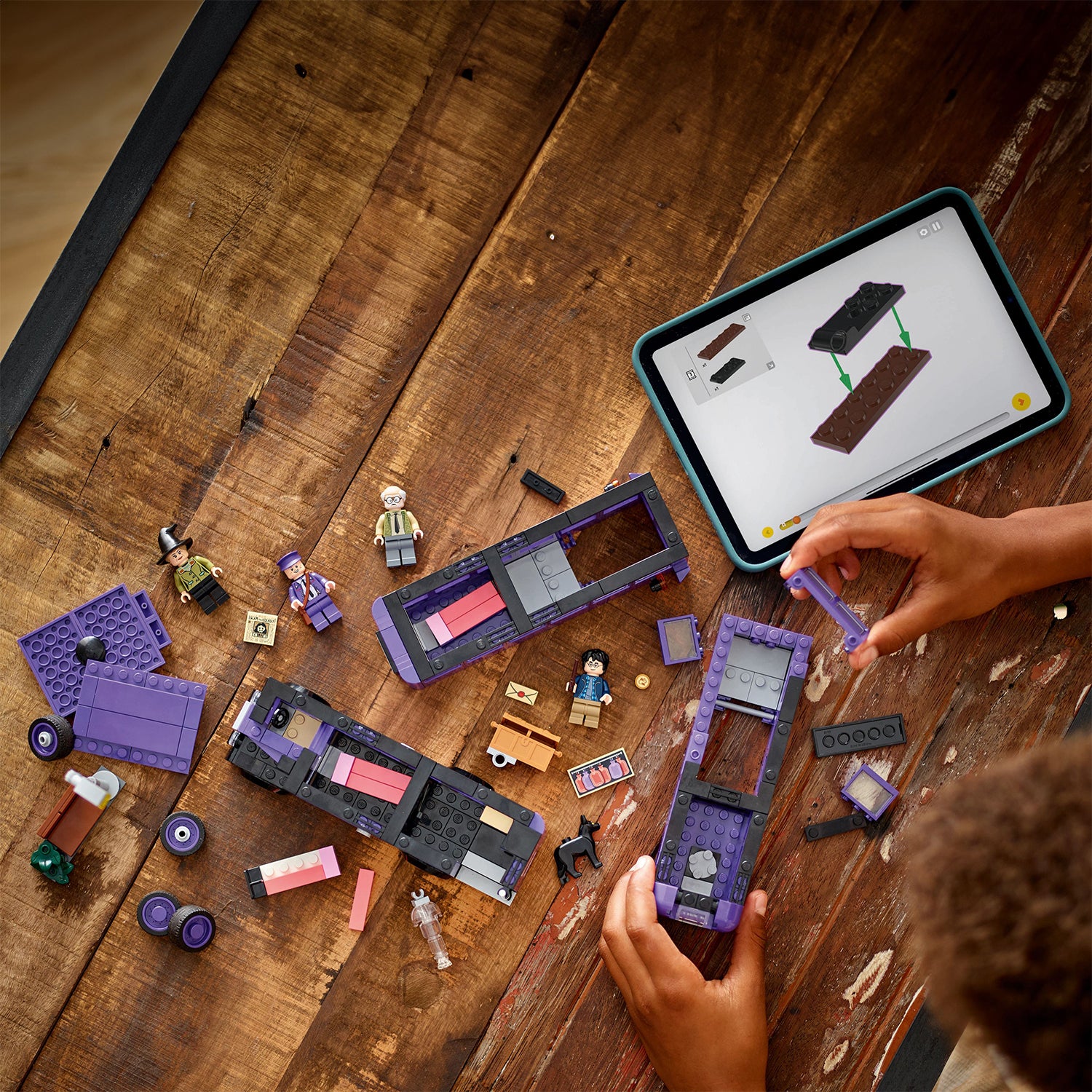 - The most detailed LEGO® brick model of the Knight Bus™ – The upper levels of the bus can be detached for easy access to the interior, which features moving beds and a swinging chandelier