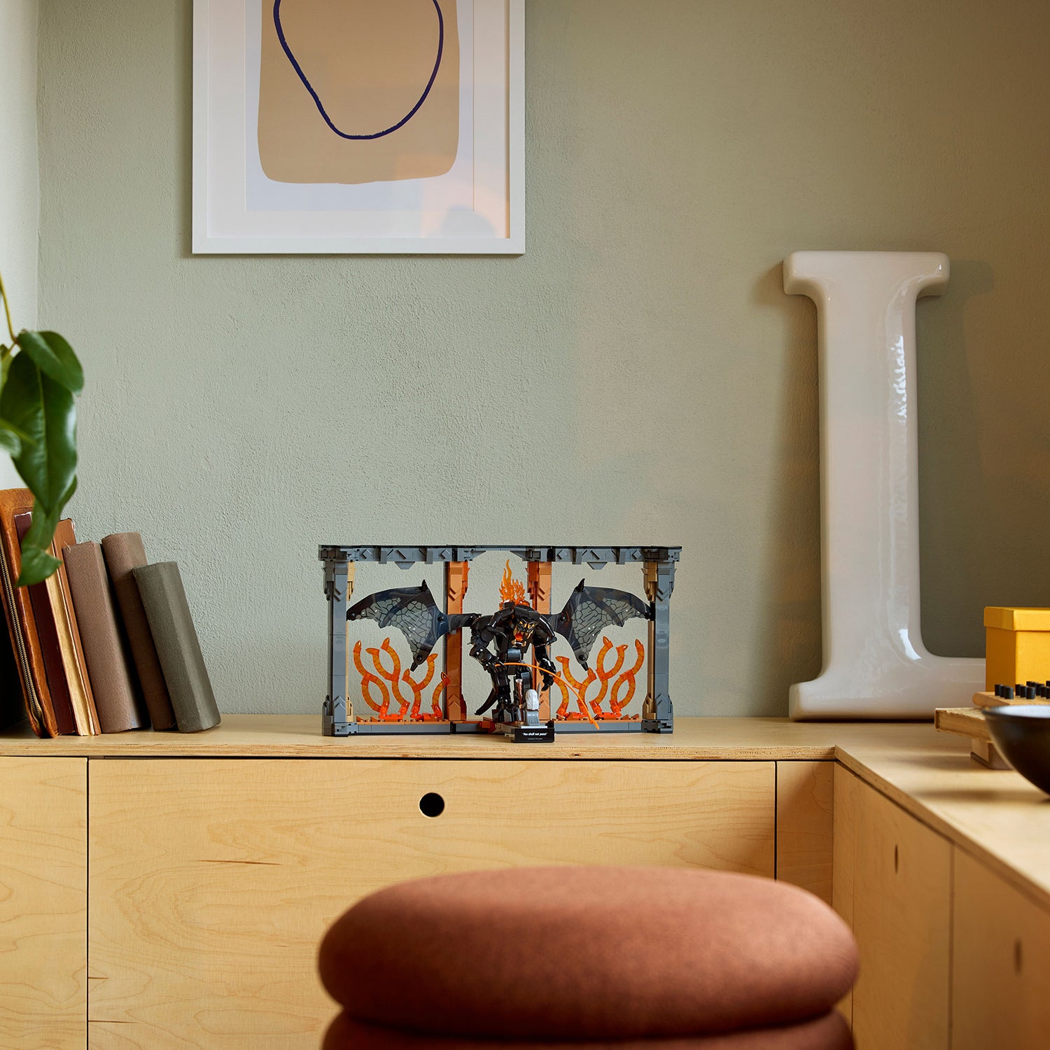 Bearing a plaque with the words ‘You Shall Not Pass’, the model depicts Gandalf the Grey™ in a fearless stance and the Balrog with its mighty wings unfurled against a blazing wall of flames. Both characters are detachable and the Gandalf minifigure has a staff and sword, while the Balrog figure wields a fiery whip and features posable limbs and wings for dynamic display.