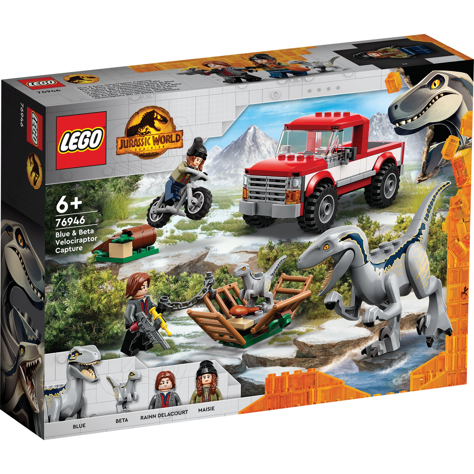 - Dinosaur and truck playset – Let kids reenact Jurassic World: Dominion movie action or create their own stories with this Blue & Beta Velociraptor Capture (76946) toy building set