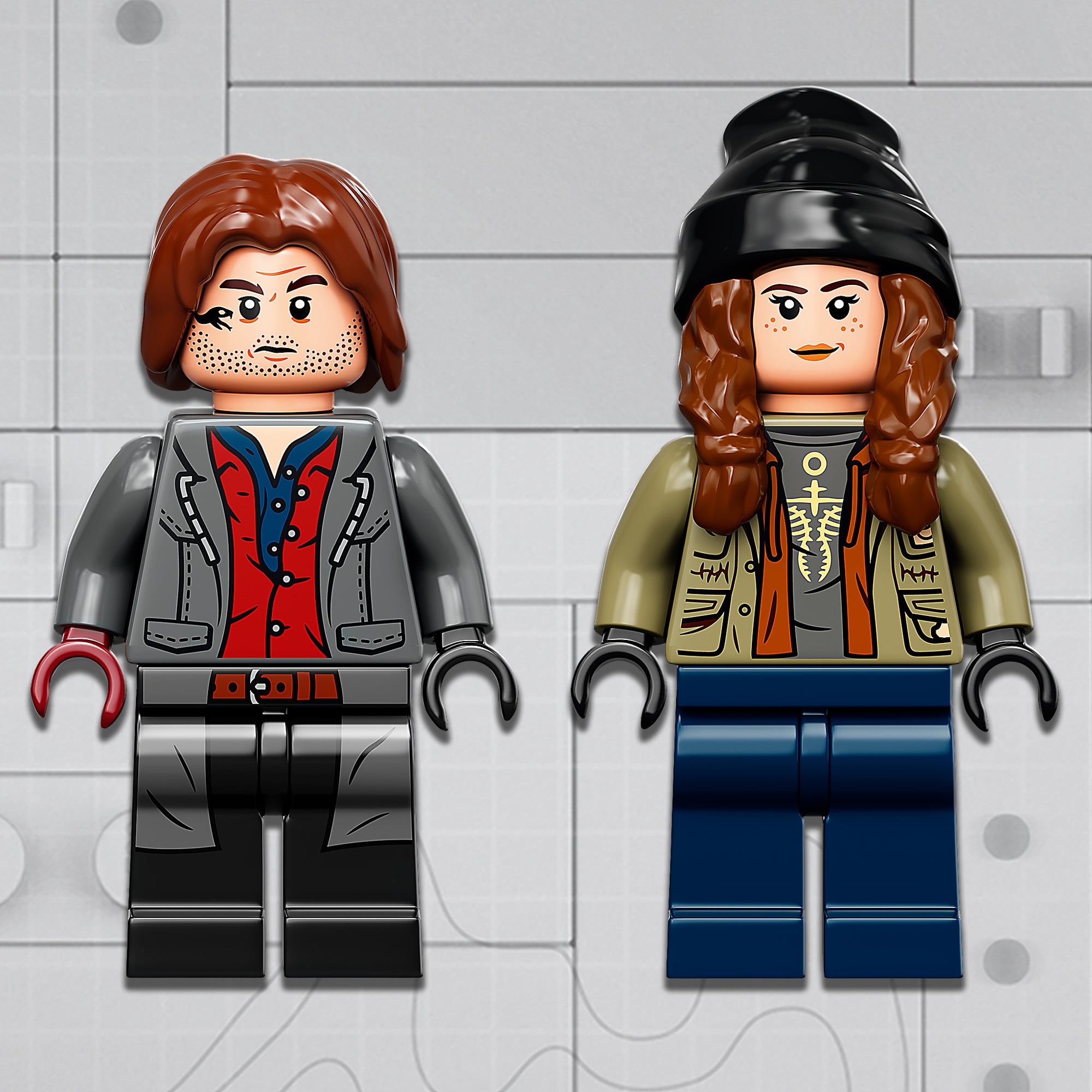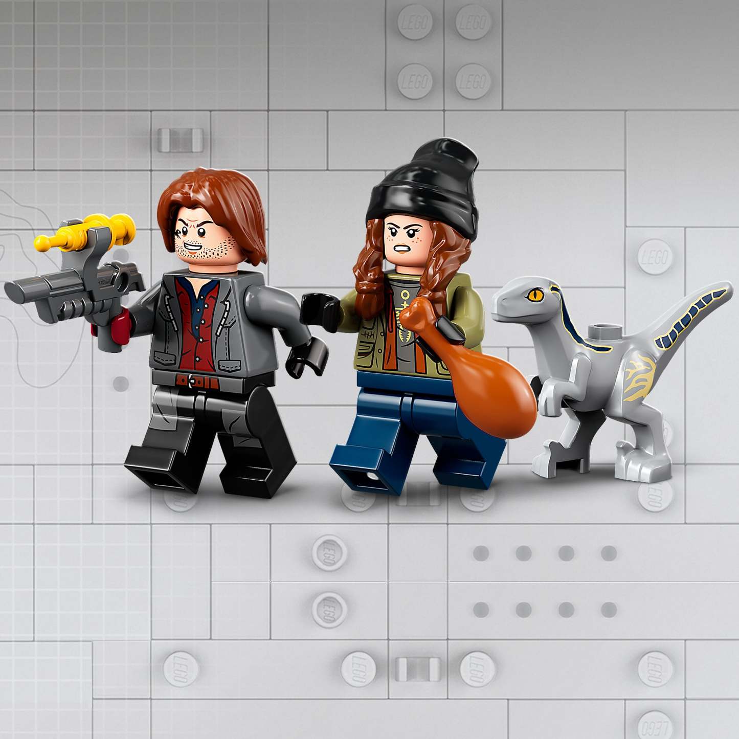 - 2 LEGO® minifigures and 2 dinosaurs – Maisie and Rainn Delacourt with a tranquilliser gun, plus a posable Blue dinosaur figure and Beta dinosaur figure to inspire roleplay adventures