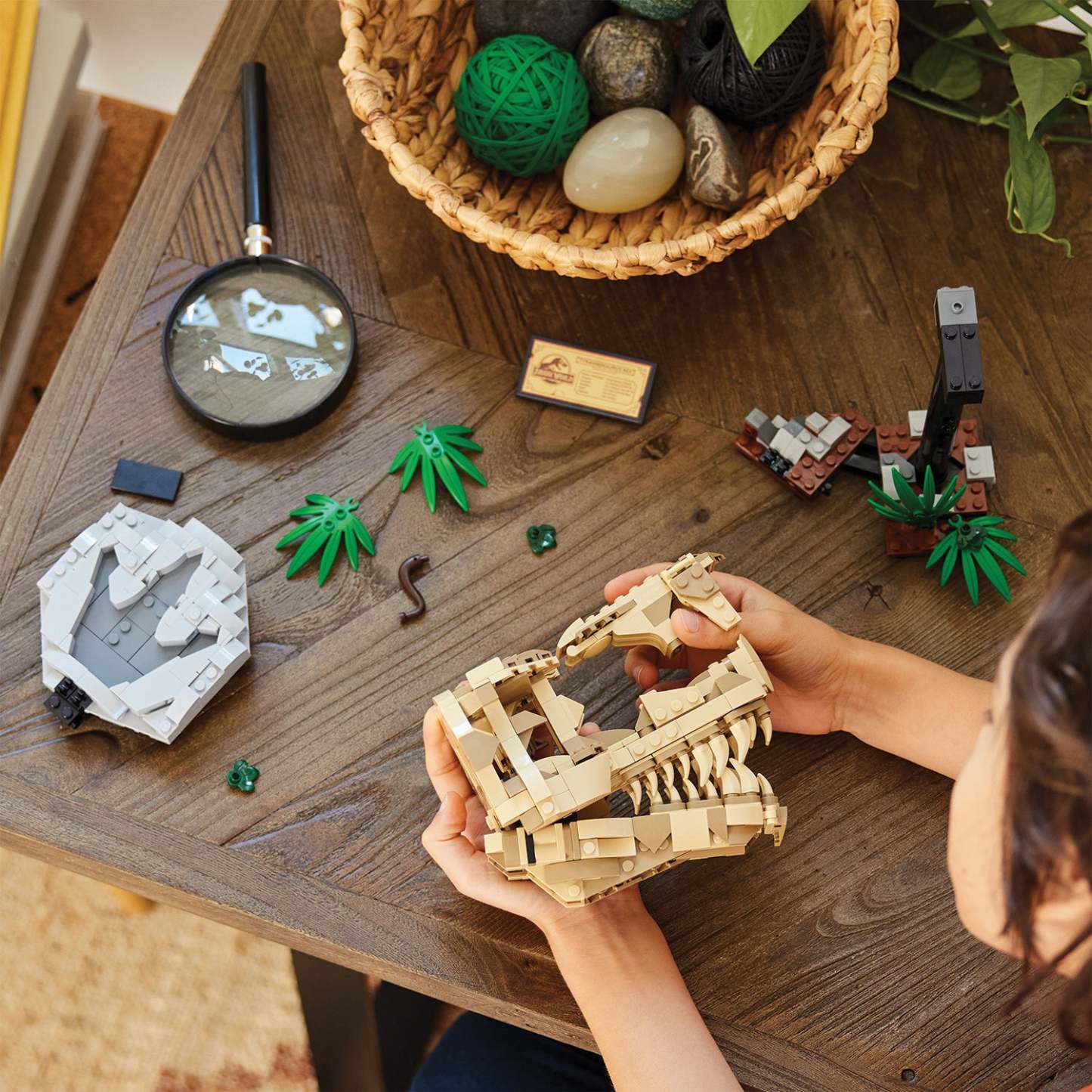 - Build and display – This 577-piece set includes a T. rex skull with a stand that measures over 21 cm (8 in.) high, 18 cm (7 in.) wide and 16 cm (6.5 in.) deep