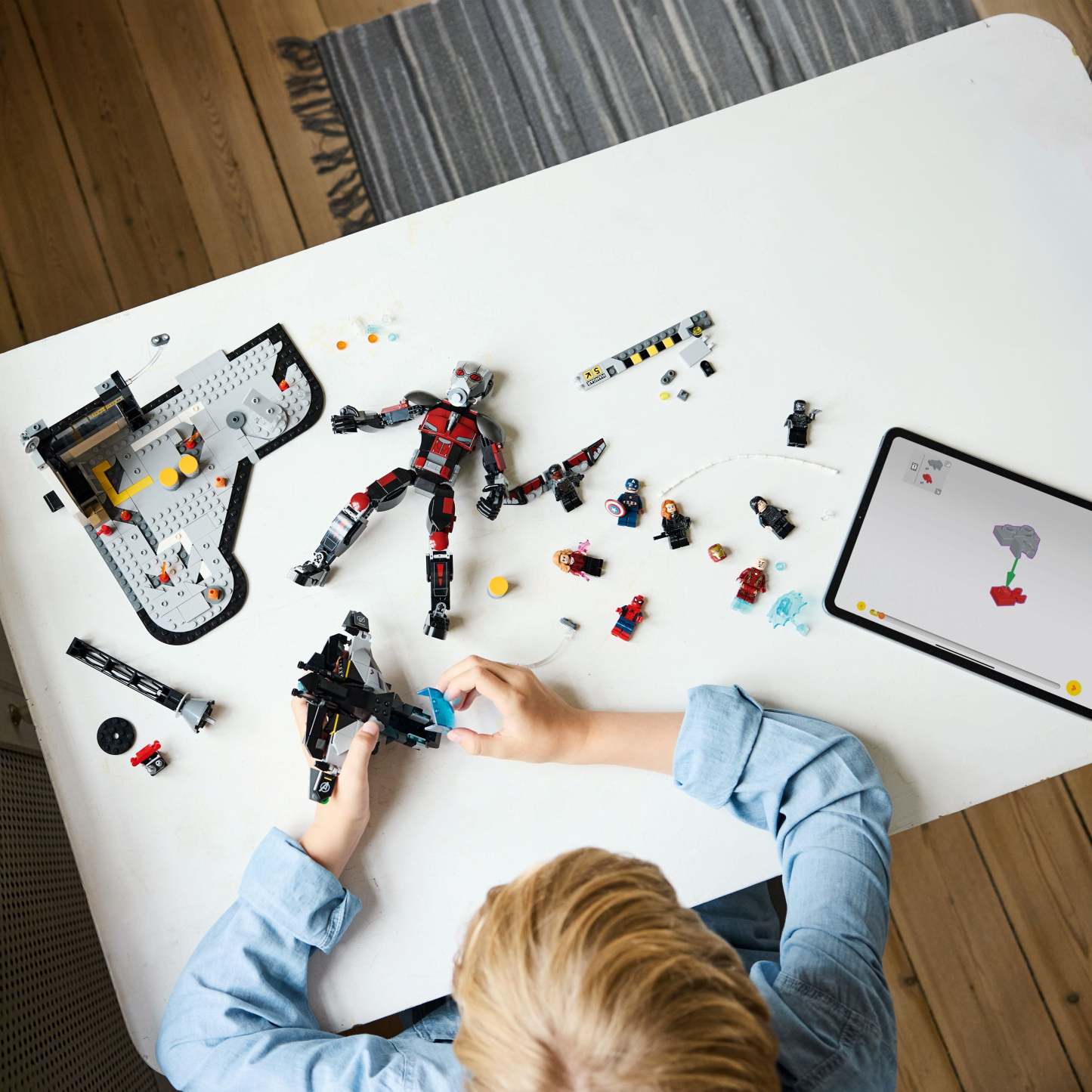 - LEGO® Marvel figures – Includes a large, fully jointed Ant-Man LEGO figure and 8 minifigures: Captain America, Winter Soldier, Wanda, Falcon, Iron Man, Spider-Man, Black Widow and Black Panther