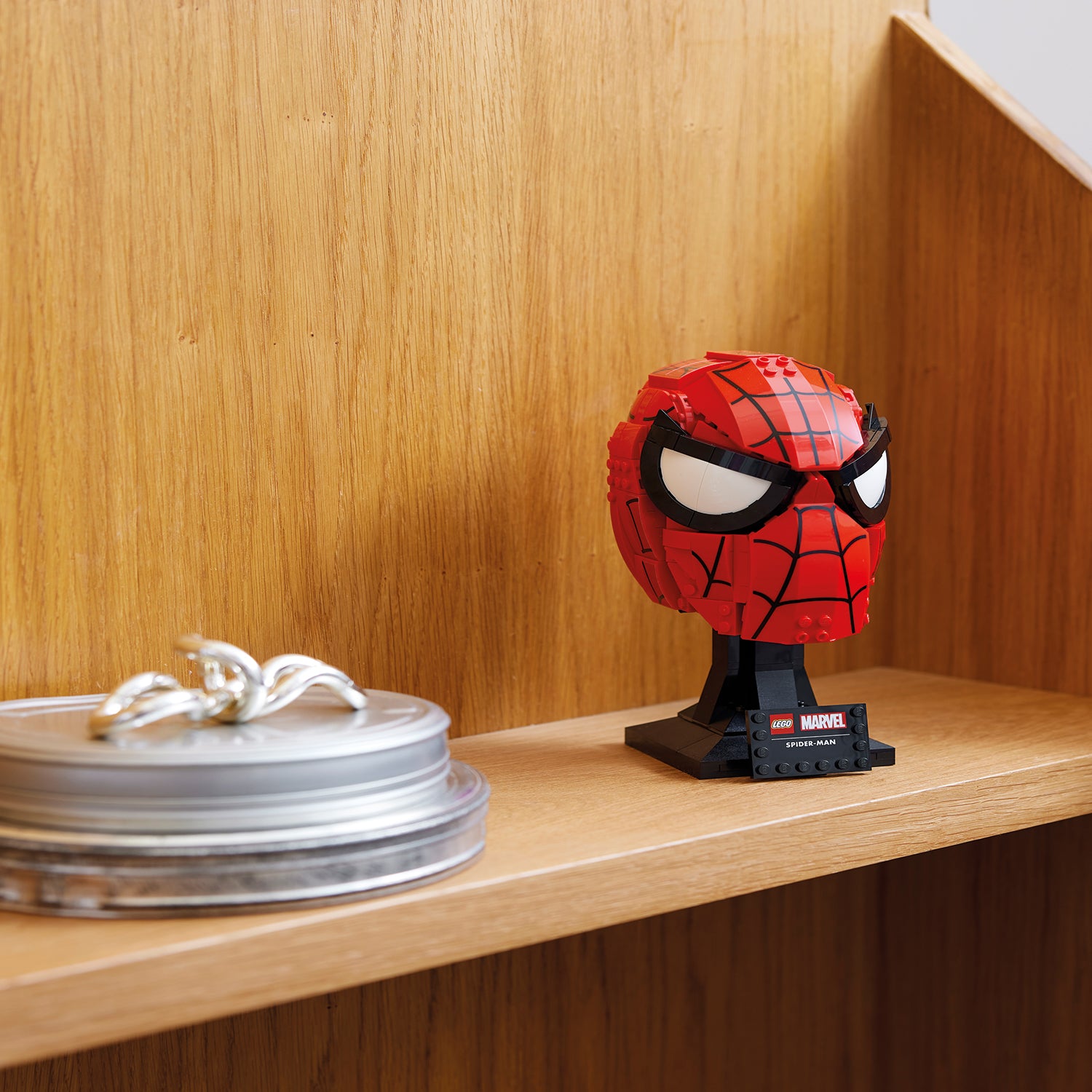 • 487-piece buildable display set – The completed LEGO® Marvel Spider-Man’s Mask, incorporating a stand with a nameplate, stands over 19 cm (7.5 in.) tall