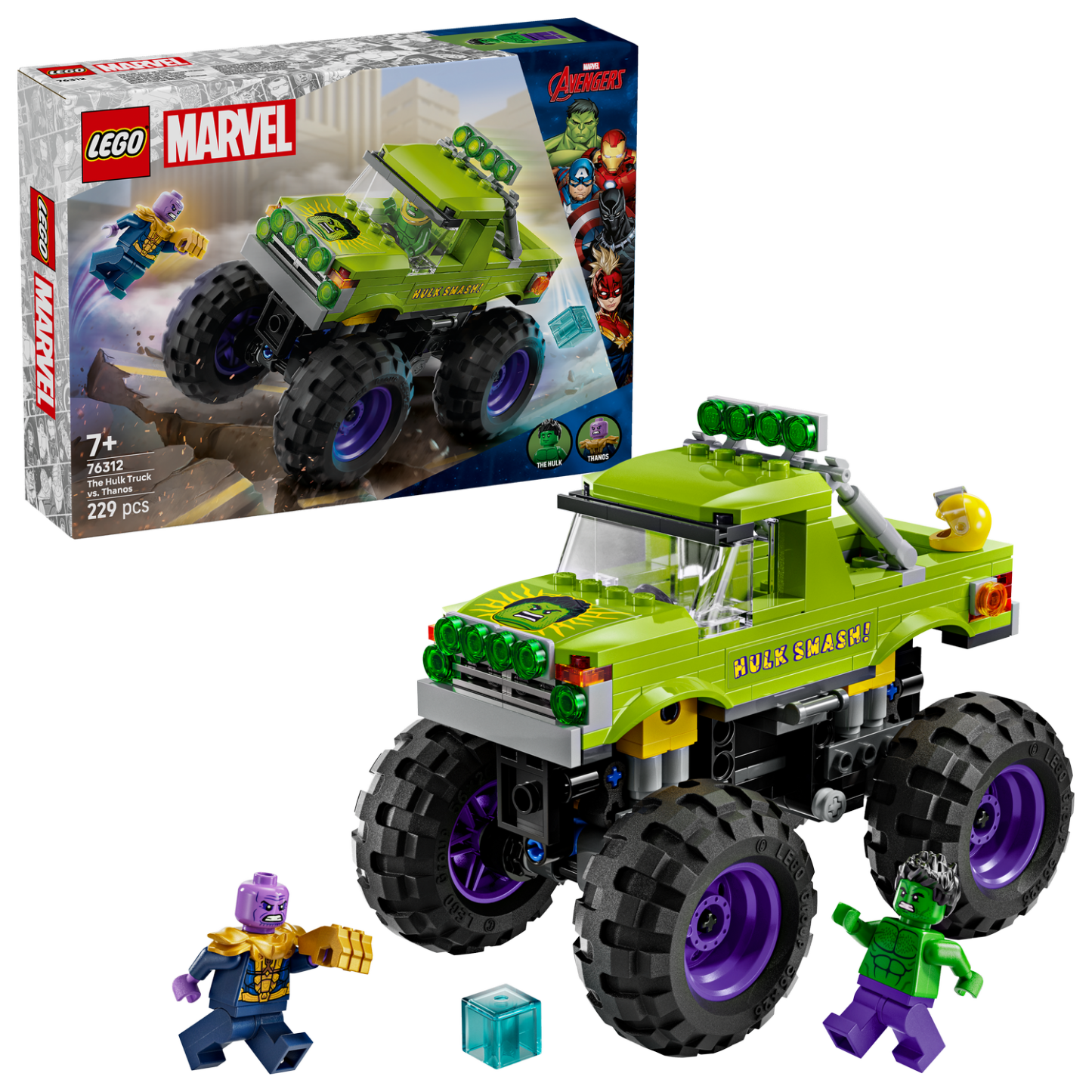 The Hulk Truck vs. Thanos (76312) is a buildable LEGO® ǀ Marvel playset featuring Hulk’s heavy-duty truck and 2 Super Hero minifigures. This high-quality gift for boys and girls aged 7 and over is great for kids who are fans of the Marvel Avengers films, big trucks and build-and-play LEGO set adventures.