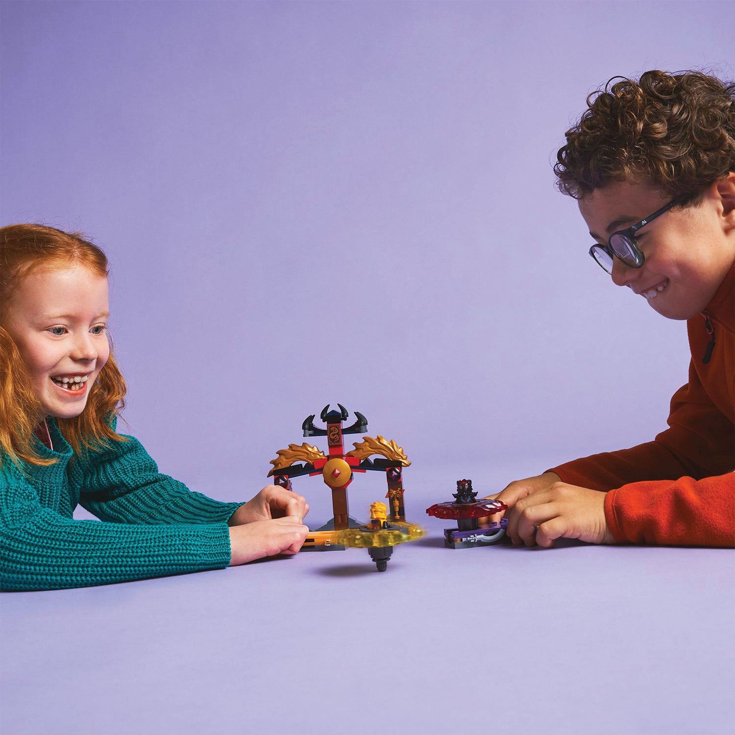 Kids can enjoy great role-play adventures as they stage good vs. evil clashes between Arin’s yellow spinner and Ras’s red spinner, which both have detachable power elements. The NINJAGO characters can upgrade their spinners with golden elements, which they can win by hitting and collapsing the battle arena.