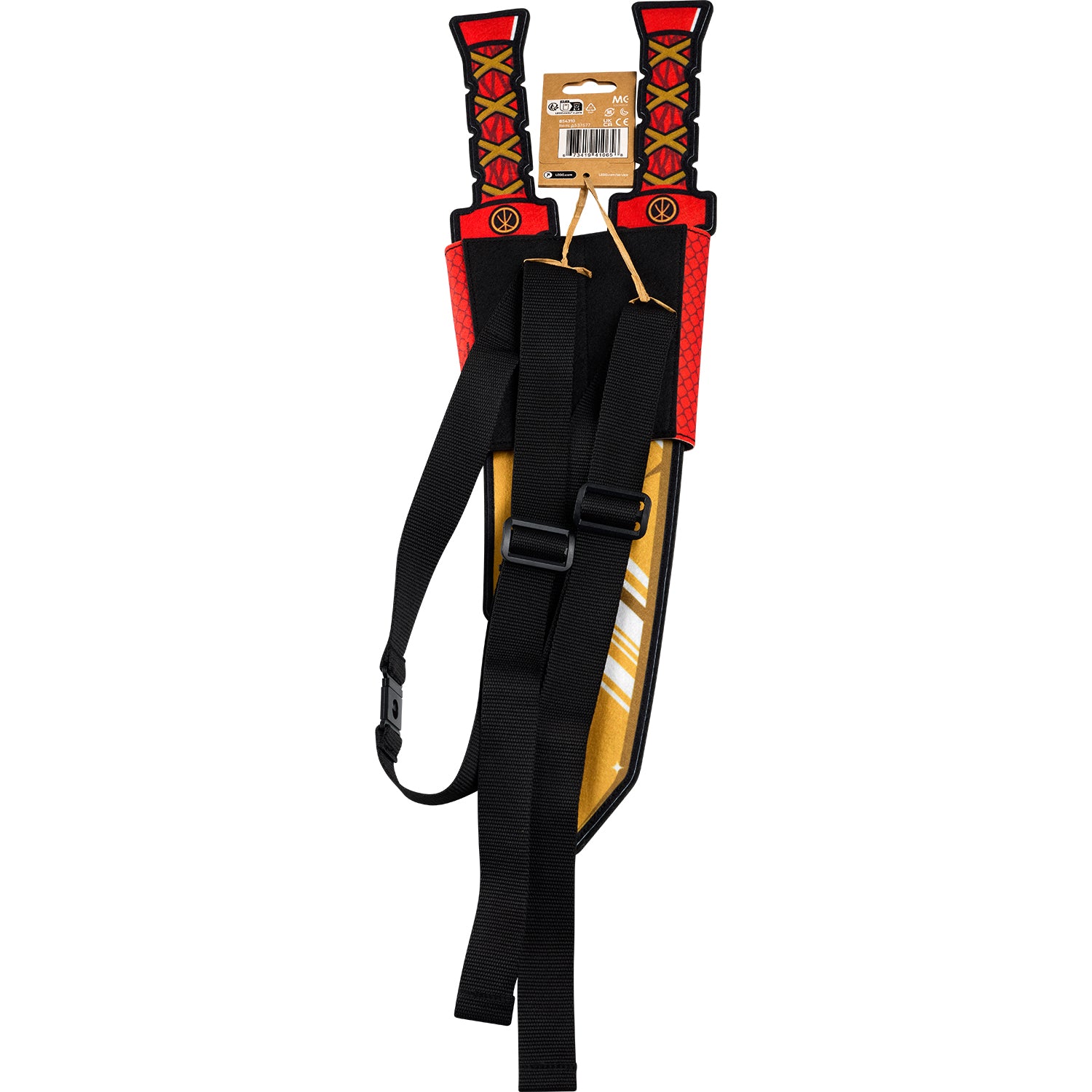 Let kids enjoy hours of creative play as they pretend to be their heroes with these LEGO® NINJAGO® Double Katanas (854310) role-play toys for boys and girls aged 6 and over. Inspired by the LEGO NINJAGO TV show, both swords feature a red handle and large golden blade and spark imaginative role play as kids relive memorable scenes or invent new ones. A great gift for kids, the 2 swords can be carried together in a black sheath, which kids can wear on their backs like their favourite ninja.