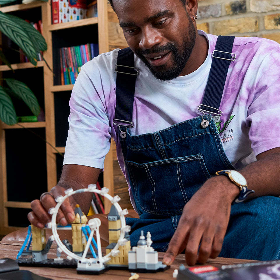 Celebrate the architectural diversity of London with this detailed LEGO® brick model. The LEGO Architecture Skyline Collection offers models suitable for display in the home and office, and has been developed for all with an interest in travel, architectural culture, history and design. Each set is scaled to give an accurate representation of the comparative size of each structure, with true-to-life colour depiction. This set features the National Gallery, Nelson’s Column, London Eye, Big Ben and Tower Bridge, and is finished with a decorative “London” nameplate.