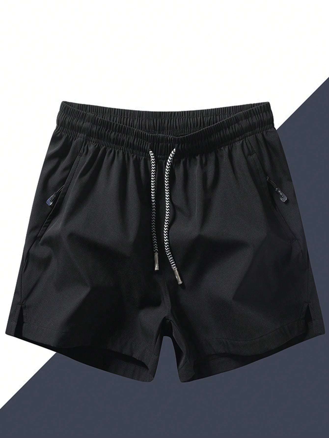 Men Drawstring Waist Zipper Pocket Shorts
