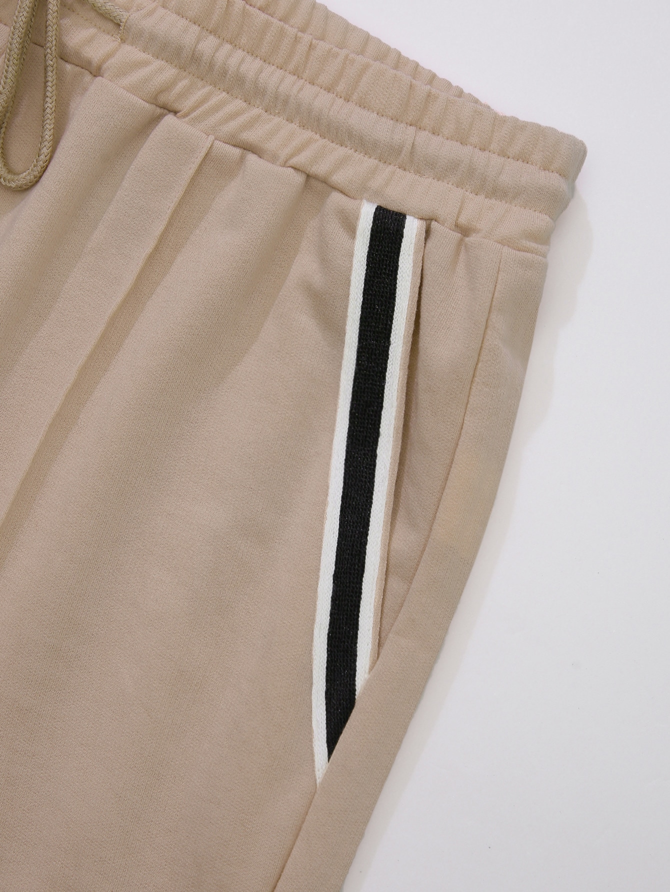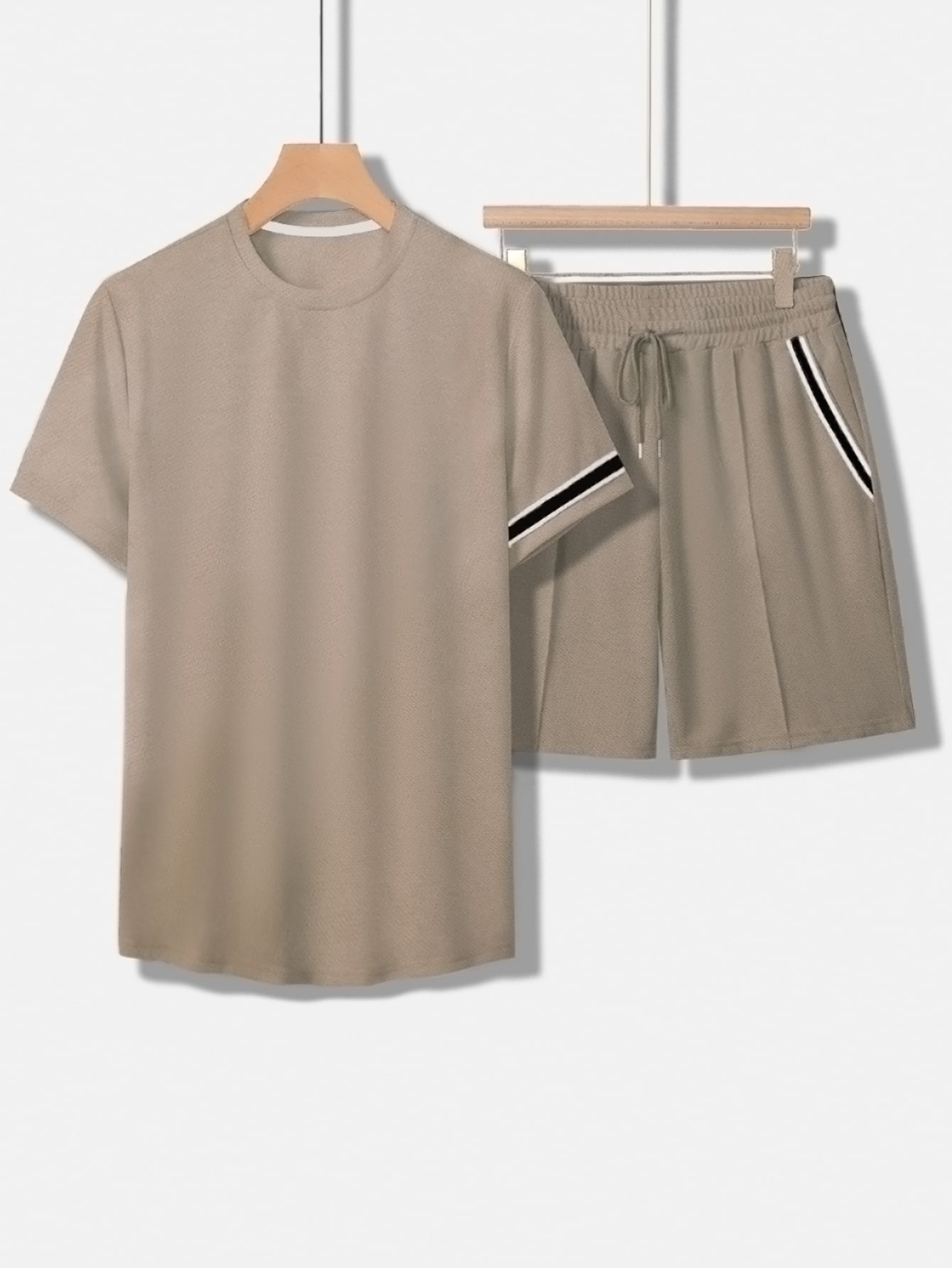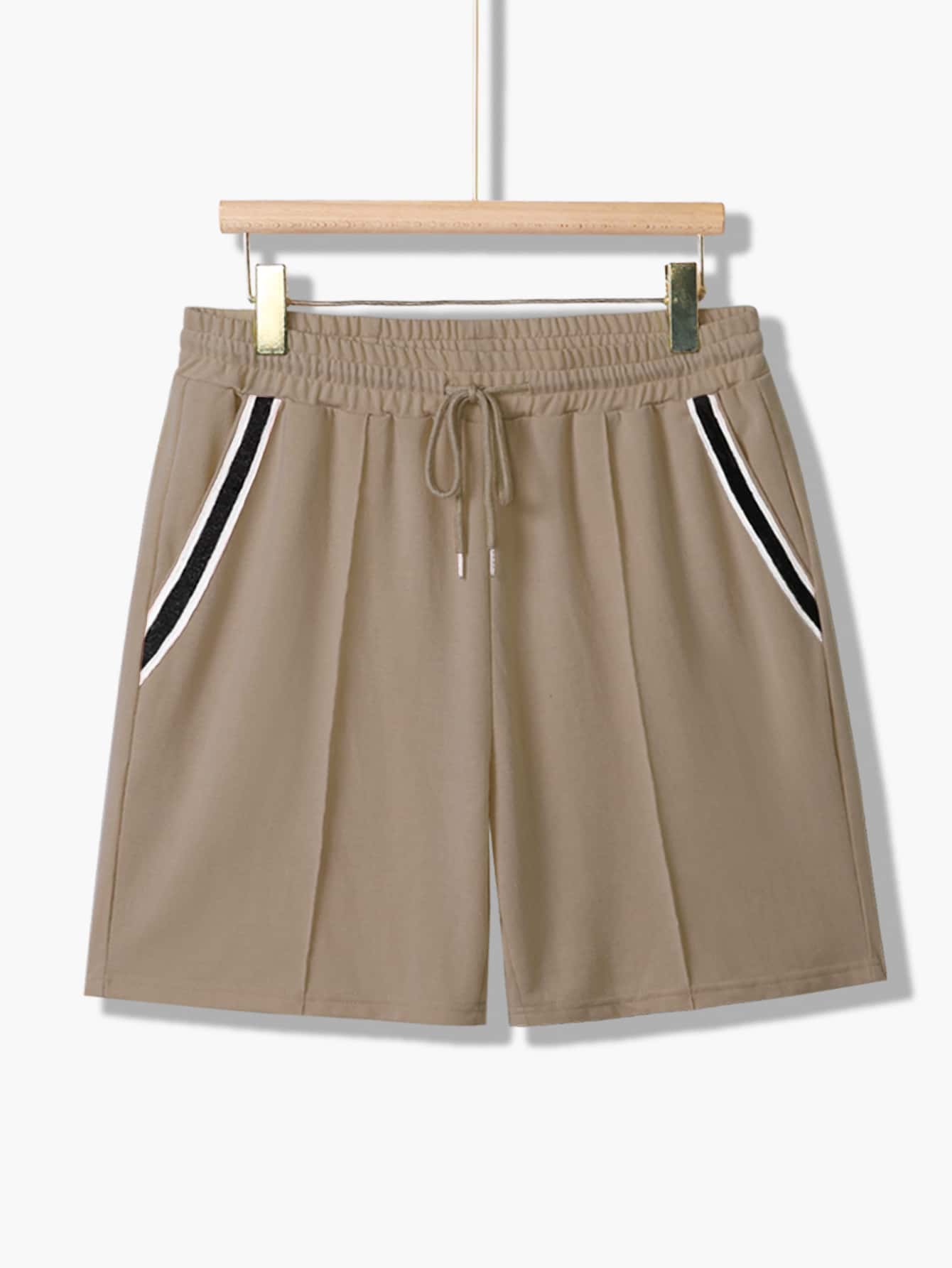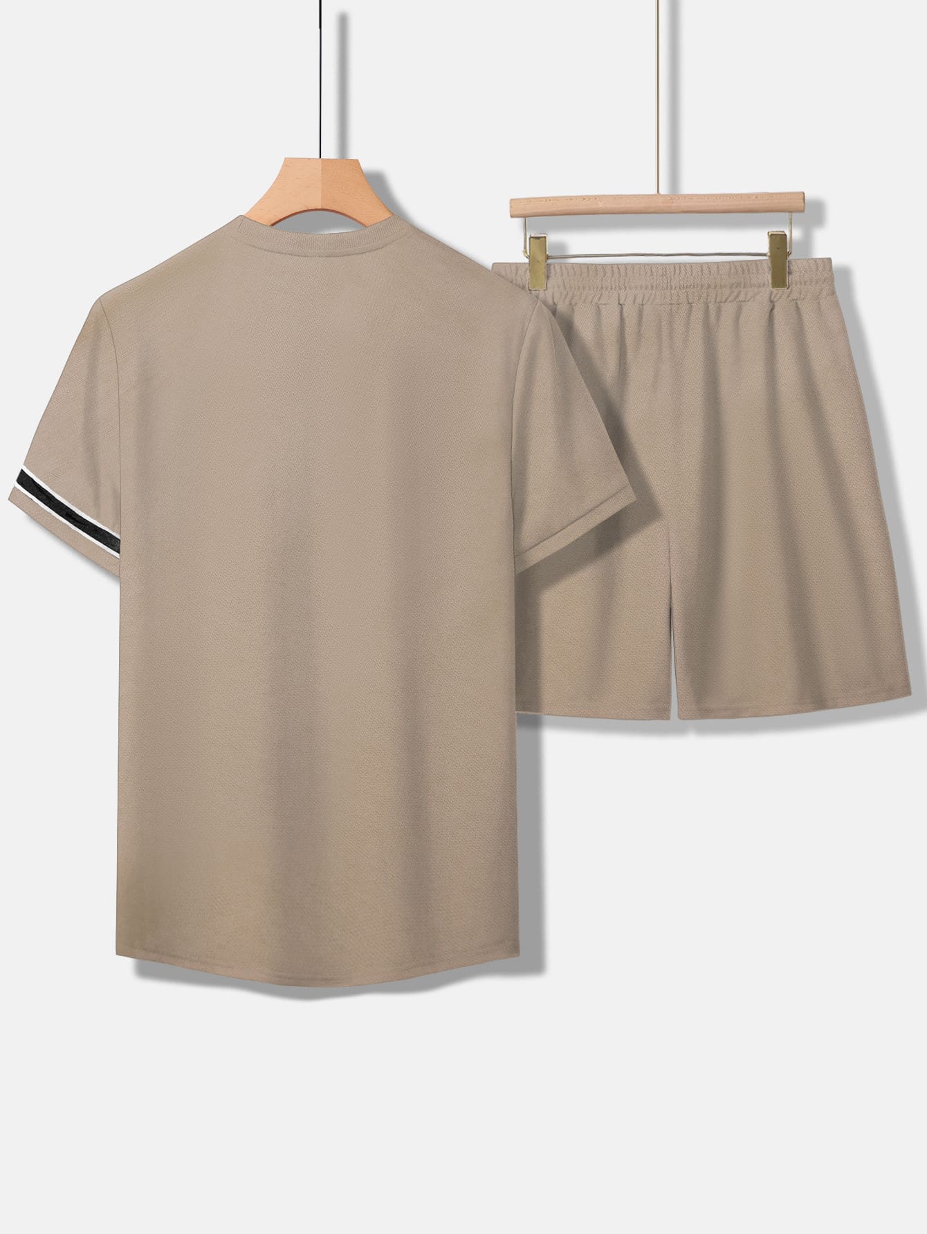 Men Contrast Tape Tee With Drawstring Waist Shorts
