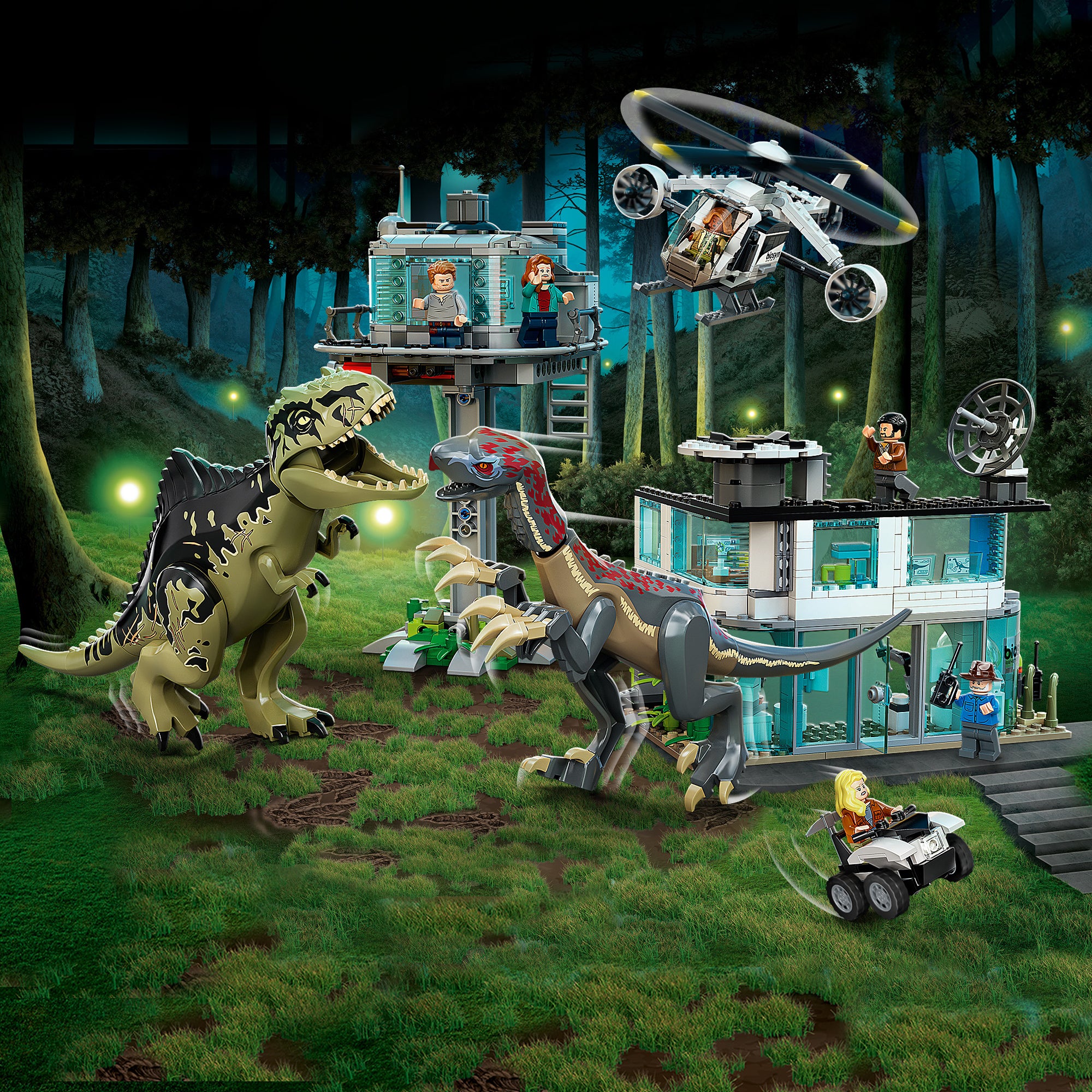 Jurassic World: Dominion fans can relive epic movie action with the awesome Giganotosaurus & Therizinosaurus Attack (76949) toy playset. A cool gift for trendsetting kids who love dinosaurs, it features 2 new-for-April-2022 posable toy dinosaur figures, a buildable HQ with a detailed lab, a garage for the all-terrain buggy, an observation tower with collapsing platform function, a helicopter with spinning rotors and a cargo compartment. Roleplay adventures This premium-quality set for ages 9 and up includes 6 minifigures – Owen Grady, Claire Dearing, Dr. Alan Grant with an amber fossil element, Dr. Ellie Sattler, Kayla Watts and Dr. Henry Wu – to bring children’s stories to life. Easy-to-follow illustrated instructions are included so even LEGO beginners can build confidently and enjoy the process. Dinosaur action! There are LEGO Jurassic World building toys to delight fans of all ages, featuring dinosaur figures, popular characters, cool vehicles and more for playtime funand display..