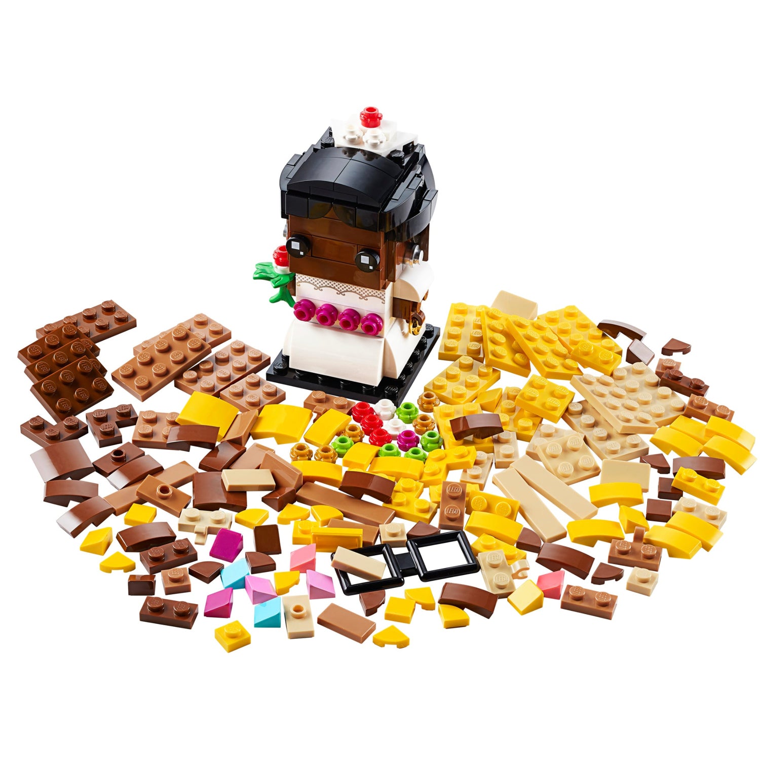 - With 306 pieces and standing more than 3” (8cm) tall, this buildable Wedding Bride looks great combined with the corresponding LEGO® BrickHeadz™ Wedding Groom (40384).